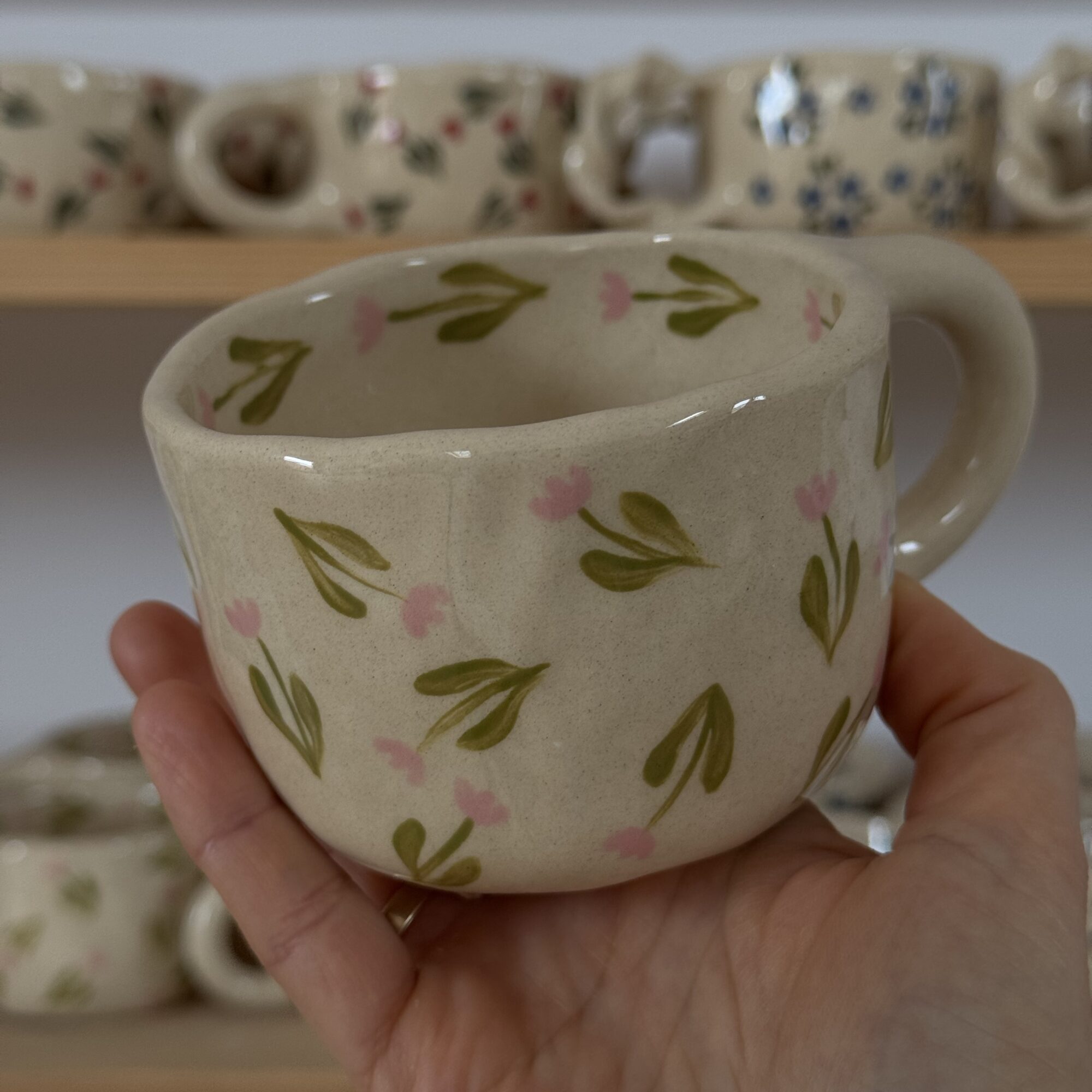Ręcznie lepiony i malowany kubek ceramiczny.