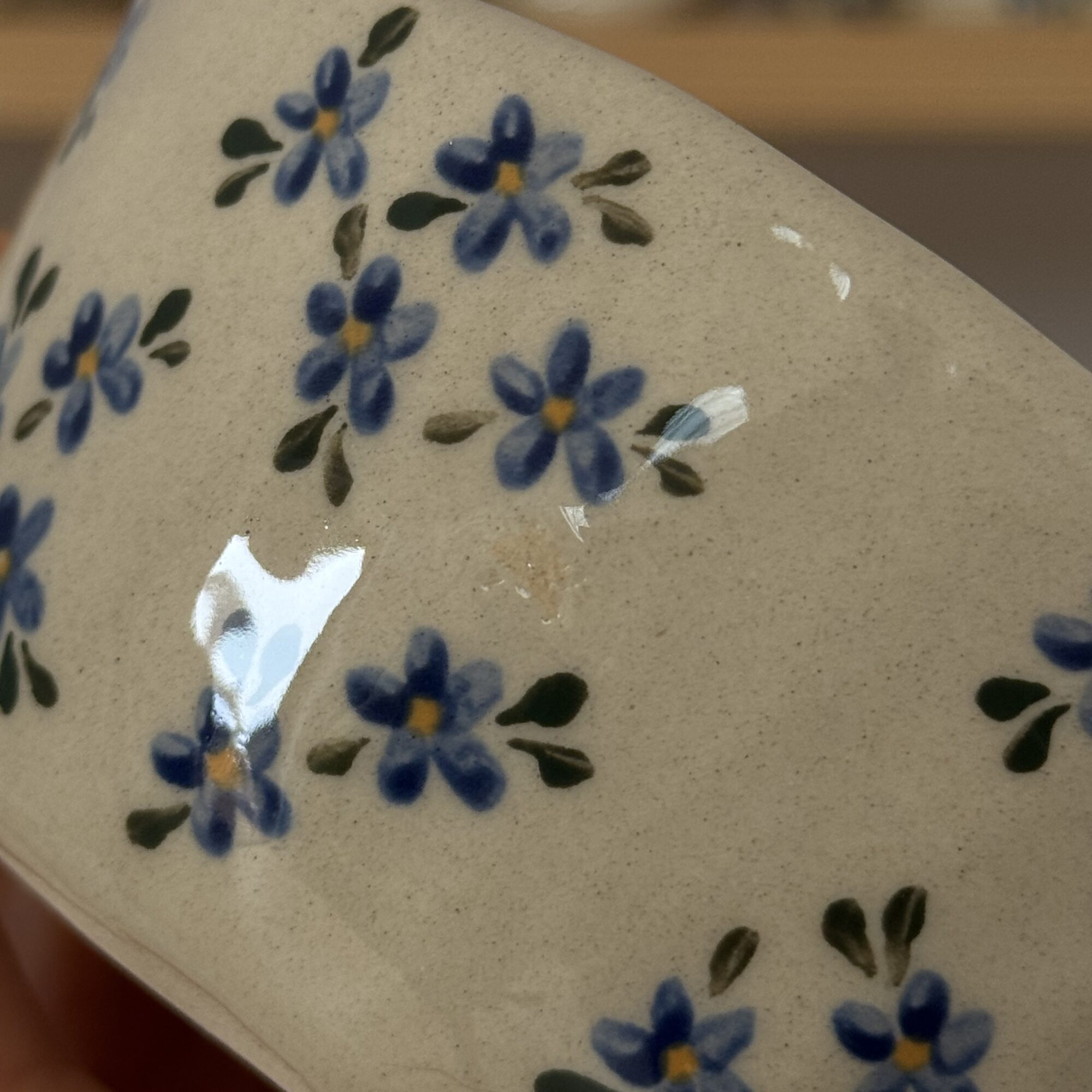 Kubek posiada wadę w postaci małej niedoskonałości szkliwa.